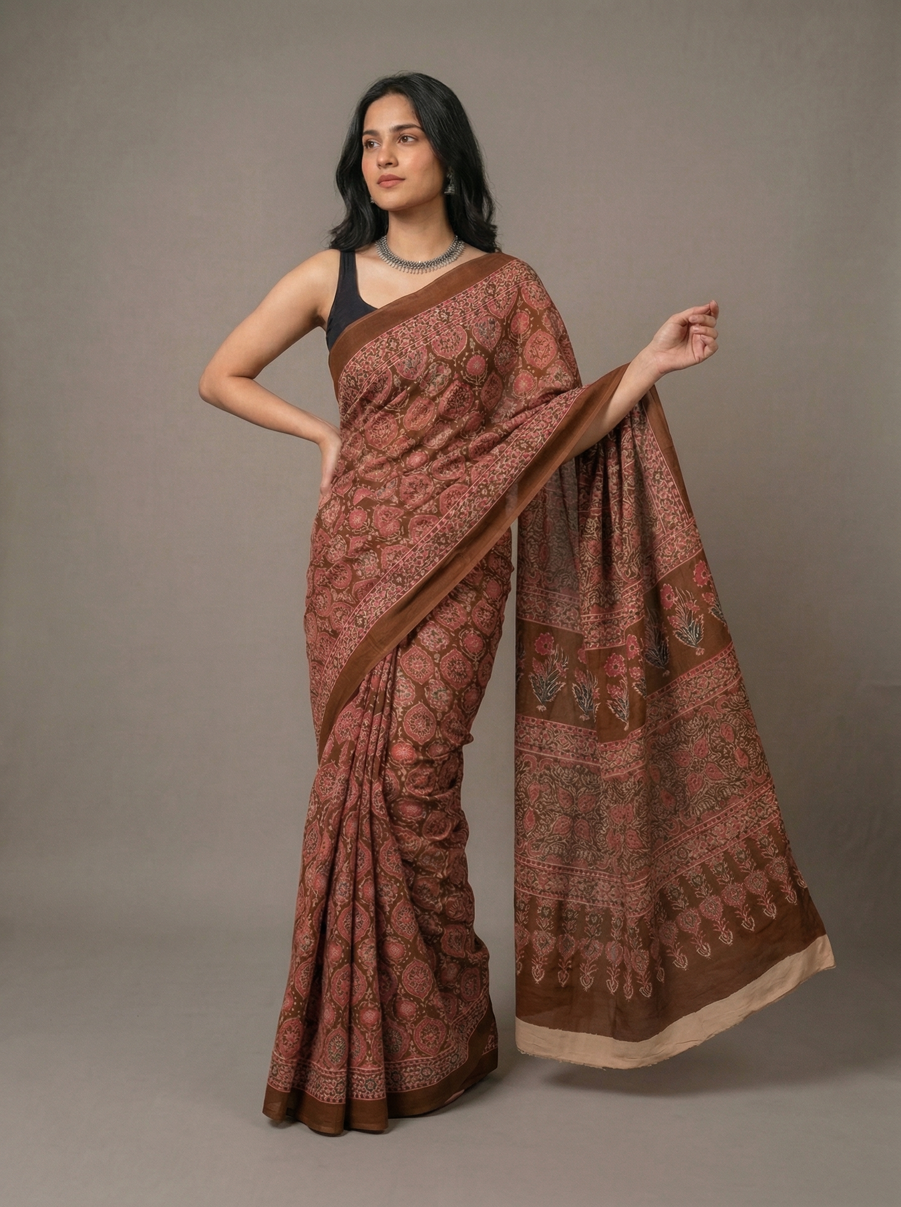 Fabric, colour, print, length all are good and satisfied. I loved the saree, tq The Auric Edit